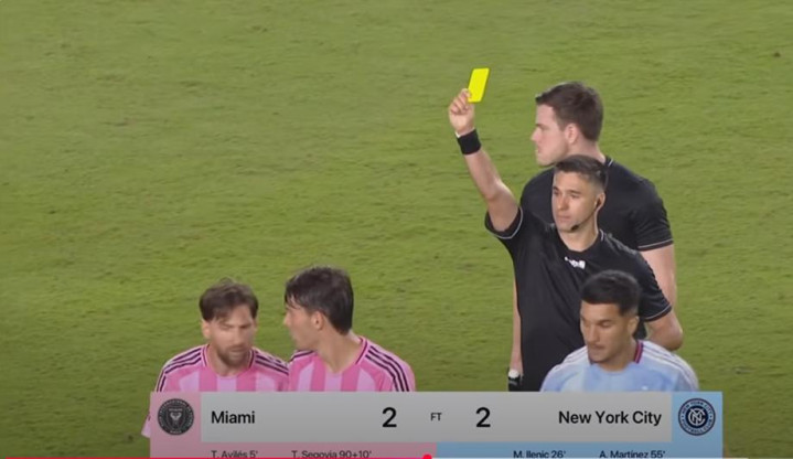 然而,这并没有让这位阿根廷人冷静下来。最终,达席尔瓦向利奥出示了一张黄牌。事实上,即便在拿到黄牌之后,迈阿密国际队的这位前锋仍继续对着裁判滔滔不绝地表达着自己的不满。